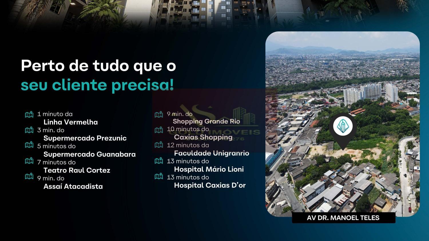 O Prime Caxias é um empreendimento moderno, localizado bem no centro de Duque de Caxias. Fácil acesso a todas as facilidades que um grande centro urbano proporciona. Fica próximo aos principais supermercados do centro do município e dá acesso à importantes vias da cidade como Linha Vermelha e Rod. Pres. Dutra. São 2 quartos com varanda que oferecem lazer completo com piscina, academia, sauna, churrasqueiras, bicicletário, cinema ao ar livre e mais. Com segurança 24h e infraestrutura planejada para famílias que desejam conforto, praticidade e valorização do investimento.